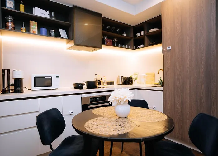 2Bedroom City Central Appletv Homepod Pool Sauna apartment offers a kitchen, as well as comforts like an air conditioner and a washing machine. Enhancing your comfort, a hot tub and a washing machine can be found at the property.